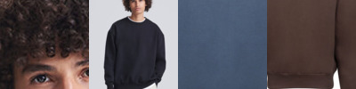 Solid colours: 80% organic cotton, 20% recycled polyester. Grey Marl: 73% Organic cotton, 21% Recycle Polyester, 6% Viscose.