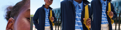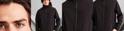 - Reverse coil zip on centre front with signature zip puller and internal storm flap and chin guard